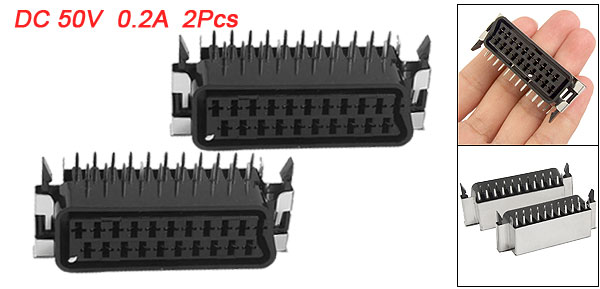 2 Pcs 21 Pins Vertical Type Scart Jack Socket Connector