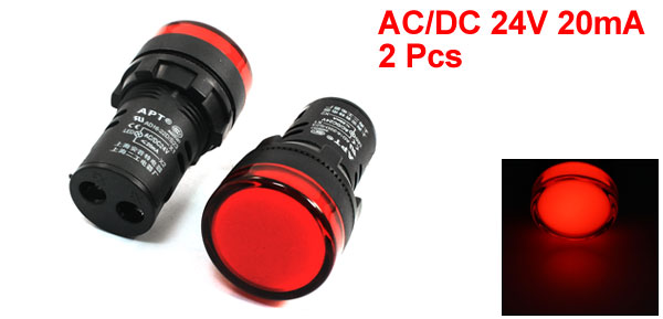2 Pcs 24V AC DC Red LED Round Top Indicator Light Pilot Signal Lamps