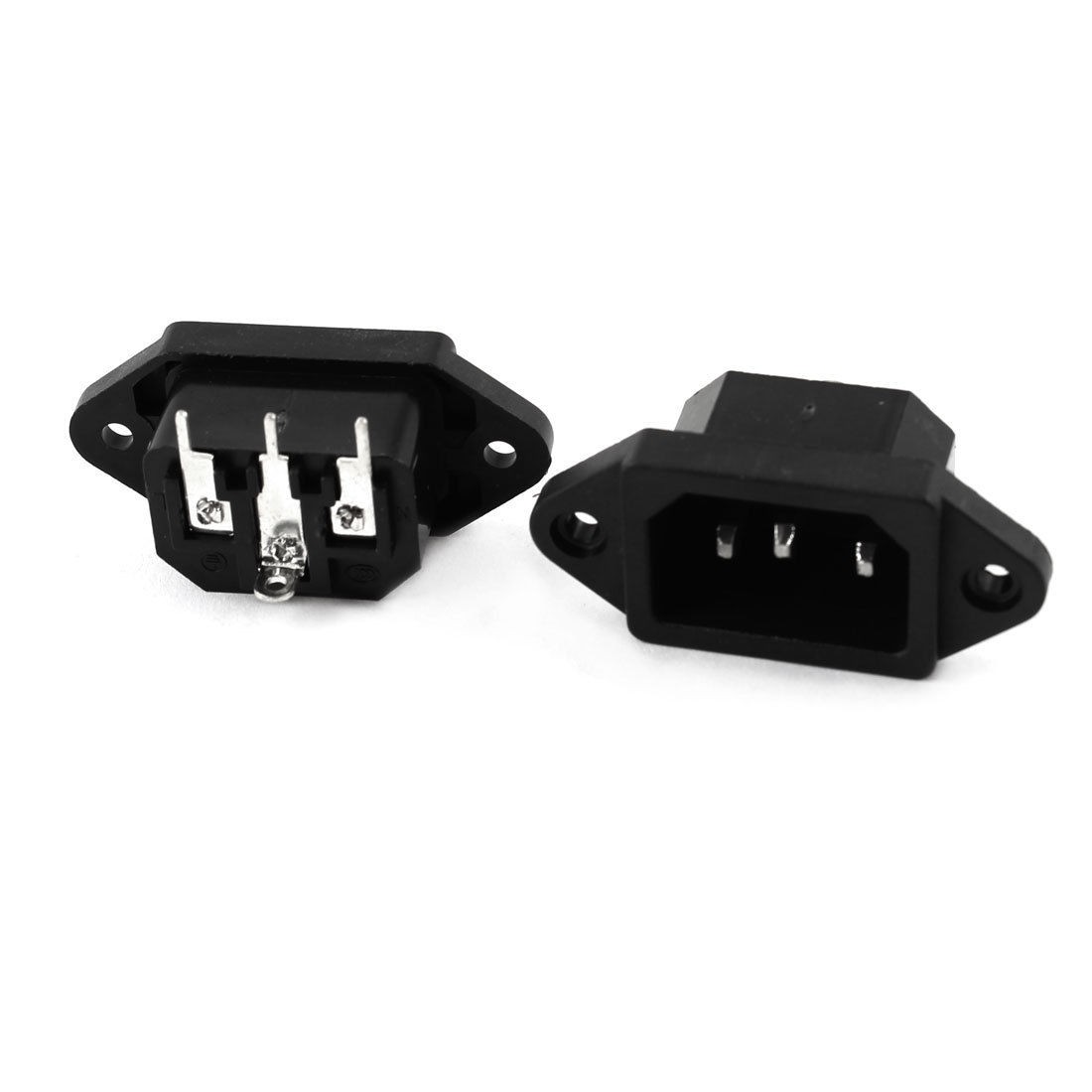 2 Pcs 250V 10A 3 Flat Pin PCB Mount C14 AC Power Socket Connector Adapter Black