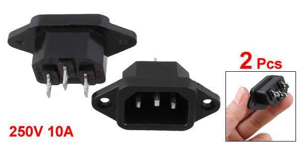 2 Pcs 250V 10A 3 Pin C14 Male Plug Power Socket Connector Adapter Black