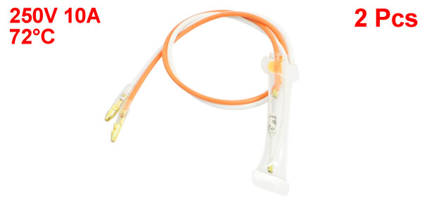 2 Pcs 250V 10A 72 Celsius Double Cable Thermal Fuse for Refrigerator