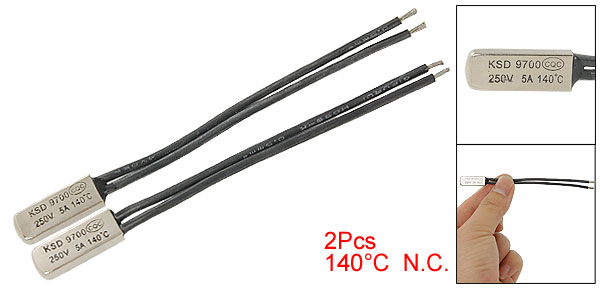 Product Name Temperature Control Switch Material Plastic, Metal Model KSD9700 Type NC(Normal Close) Contact Capacity 250V 5A Max Rated Disconnection Temperature 140C/284F Active Temperature 140 ± 5 Degree Reset Temperature 105 ± 12 Degree Color Black, Silver Tone Contact Stick Length 70mm/2.9" Head Size 20 x 7 x 3mm/0.8" x 0.3" x 0.1"(L*W*T) Weight 8g Package Content 2 x Temperature Control Switch - Reviews