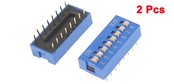 2 Pcs 2.54mm Pin Pitch 2 x 8 Pins 8 Position Slide Style DIP Switches Blue