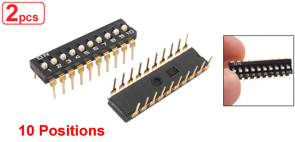 2 Pcs 2.54mm Pitch 10 Position IC Type DIP Switch Black Kjnnr