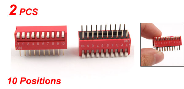 2 Pcs 2.54mm Pitch 10 Position Slide Type DIP Switch Red