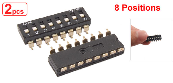 2 Pcs 2.54mm Pitch 8 Position SMD Type DIP Switch Black