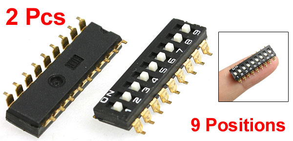 2 Pcs 2.54mm Pitch 9 Position SMD Type DIP Switch Black