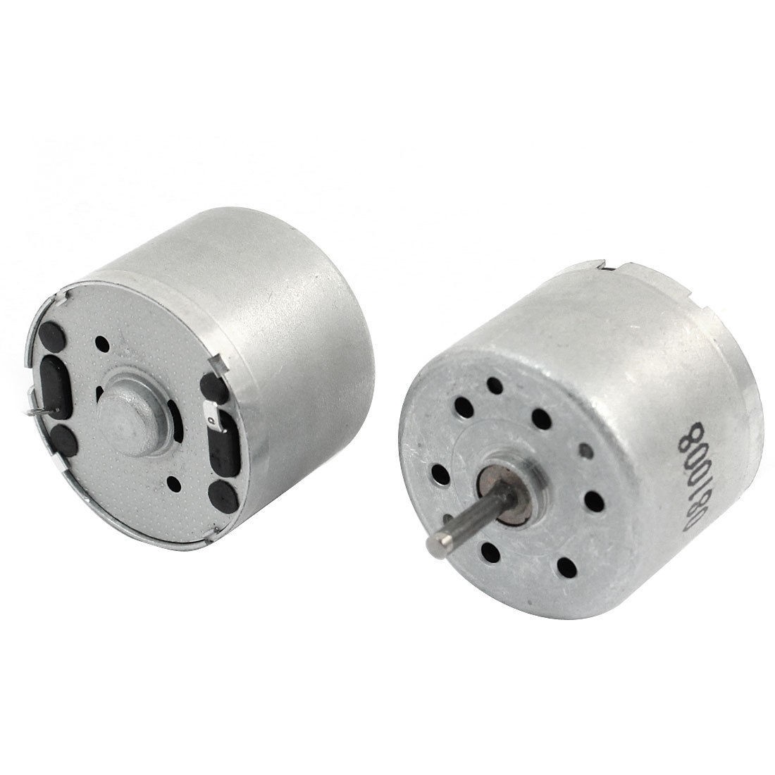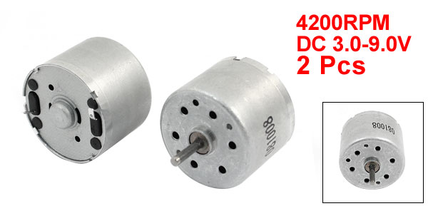 Details2 Pcs 2mm Shaft 24mm Diameter Electric Mini Motor 4200RPM DC 3.0-9.0V  Product Name DC Motor Rated Voltage DC 3.0-9.0V Current 0.08A Speed 4200 RPM Mounting Screw Hole Diameter 2mm/0.08" Shaft Size 2 x 9mm/ 0.08" x 0.35"(D*L) Body Size 24 x 18mm/ 0.91" x 0.7" (D*H) Main Color Silver Tone Material Metal Net Weight 57g Package 2 x DC Motor