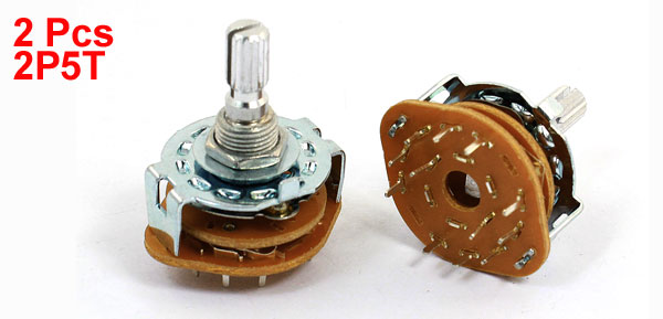 2 Pcs 2P5T 2 Pole 5 Position 6mm Knurled Shaft Dia Band Selector Rotary Switch