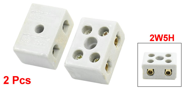 Product Name Ceramic Terminal Block Type 2W5H Rating Current 30A Rating Voltage 110-600V Max. Withstand Temperature 500°C Total Size 2.8 x 2 x 1.5cm/1.1" x 0.78" x 0.59"(L*W*T) Mounting Hole Dia 5.5mm/0.22" Materials Ceramic, Bronze Main Color White Net Weight 41g Package Content 2 x Ceramic Terminal Block - Reviews