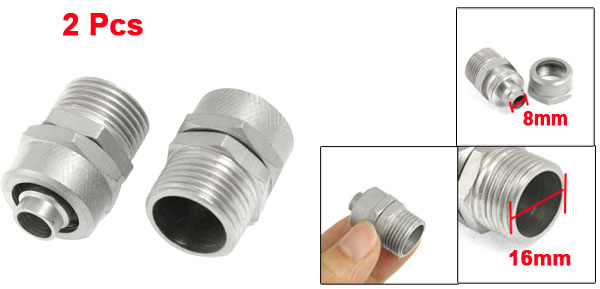 Product Name Quick Coupler Thread Size 3/8" PT Male Thread Diameter 16mm Fit Tube 8 x 12mm/ 0.315" x 0.47" (Inner Dia.*Outer Dia.) Overall Size 18 x 27mm/ 0.7" x 1.06" (D*L) Color Silver Tone Material Chrome Plated Solid Brass Weight 41g Package Content 2 x Quick Coupler - Reviews
