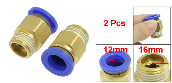 Item Name Quick Fittings Material Solid Brass & Plastic Color Gold Tone, Blue Thread Size 3/8" PT Thread Diameter 16mm Inner Diameter (Blue End) 12mm/ 0.472" Total Size(Each) 28 x 22mm/ 1.1" x 0.87" (L*Max. D) Weight 38g Package Content 2 x Quick Fittings - Reviews