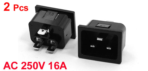 2 Pcs 3 Pin IEC320 C14 Inlet Plug Power Socket Connector AC 250V 16A