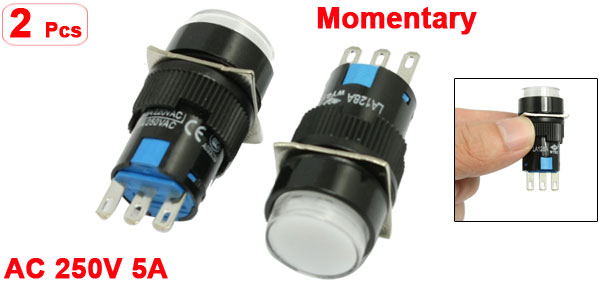 2 Pcs 3 Pin Momentary 1NO 1NC White Round Push Button Switch AC 250V 5A