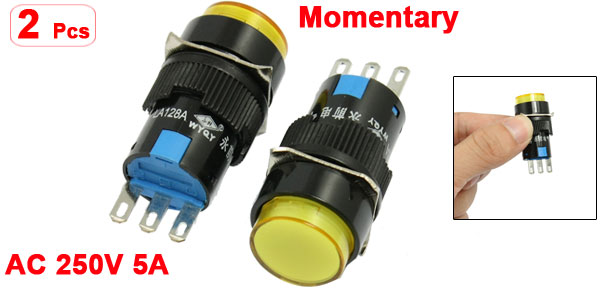 2 Pcs 3 Pin Momentary 1NO 1NC Yellow Round 16mm Push Button Switch AC 250V 5A