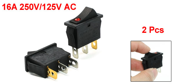 Product Name Rocker Switch Poles SPST Terminals 3 Pins Position 2 Position Rated Voltage 16A 250V/125VAC Light Color Red Overall Size 3 x 1.4 x 4cm / 1.2" x 0.55" x 1.6" (L*W*H) Mounting Size 2.8 x 1 x 3cm / 1.1" x 0.39" x 1.2" (L*W*H) Color Black, Red, Silver Tone Material Plastic, Metal Total Weight 15g Package Content 2 Pcs x Rocker Switch - Reviews