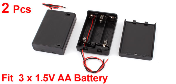 2 Pcs 3 x 1.5V AA Battery Box Case Holder with Cover ON/OFF Switch Black