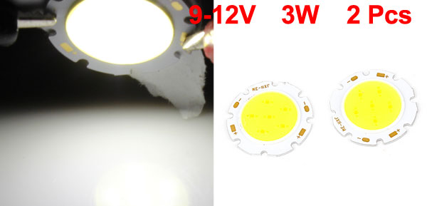 Product Name COB LED Lamp Bead DC Forward Voltage 9-12V DC Forward Current 300mA Intensity Luminous 250-270LM Color Temperature 6000K-6500K power consumption 3W Chip 17x23MIL Material Electronic Parts Body Size 28 x 2mm/1.1" x 0.08"(D*T) Emitter Color White Net Weight 7g Package Content 2 x COB LED Lamp Bead  - Reviews