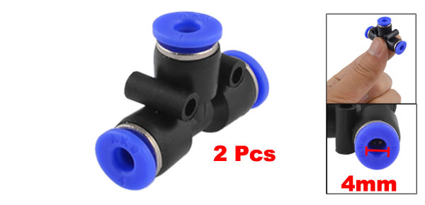 2 PCS 4mm Tee Adapter Push In Fittings Quick Connector