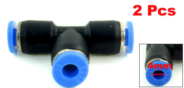 2 Pcs 4mm to 4mm Safety T Shaped Push In Quick Fittings Connectors