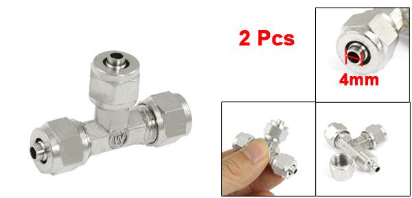 2 Pcs 4mm x 6mm Pneumatic Hose Air Fitting Tee Quick Connector Coupler
