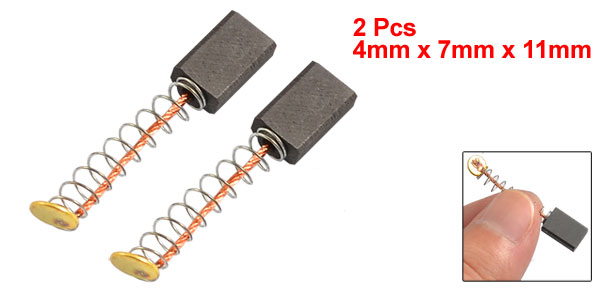 Product Name Motor Carbon Brushes Fit for Generic Electric Motor Material Carbon, Metal Color Black, Gold Tone Carbon Brush Size (Approx) 4 x 7 x 11 mm/ 0.15" x 0.27" x 0.43"(L * W * H) Total Length(Approx) 35 mm/ 1.37" (When Spring Stretching) Total Weight 2g Package Content 2 Pcs x Motor Carbon Brushes - Reviews
