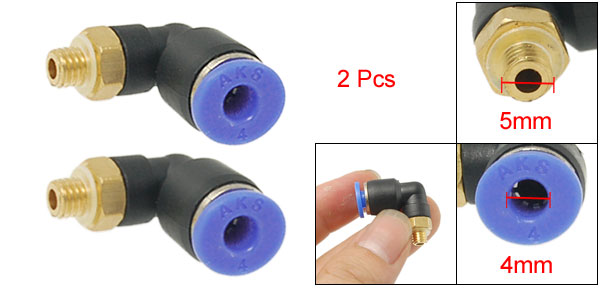 2 Pcs 4mm x M5 Pneumatic Connector Elbow Quick Fittings