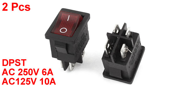 Item Name Rocker Switch Type On/ Off (DPST) Voltage & Current AC 250V, 6A AC125V, 10A Mount Hole Size 18 x 13mm / 0.71" x 0.51"(L*W) Size 2 x 1.5 x 2.8cm / 0.8" x 0.6" x 1.1"(L*W*H) Color Black, Red Material Plastic, Metal Total Weight 14g Package Content 2 x Rocker Switch  - Reviews