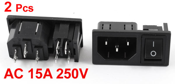 2 Pcs 4Pin On-Off Rocker Switch IEC320 C14 Inlet Power Socket AC 15A 250V