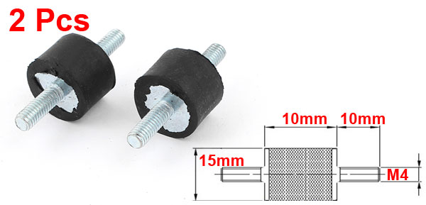 Product Name Rubber Vibration Isolator Mounts Material Metal, Rubber Thread Size (Approx.) M4 x 10mm(Dia.* L) Rubber Size (Approx.) 15 x 10mm / 5/8" x 3/8" (Dia.*H) Overall Height(Approx) 33mm / 1.3" Color Black, Silver Tone Weight 12g Package Content 2pcs x Rubber Vibration Isolator Mounts - Reviews