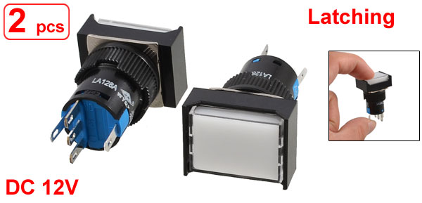 2 Pcs 5 Pins White Lamp Latching Rectangular Push Button Switch DC 12V
