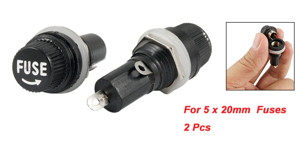 Item Name Panel Mounted Fuse Holder Fit for 5 x 20mm / 0.197" x 0.787" Fuses Material Plastic and Metal Color Black, Silver Tone Size 13 x 40mm/ 0.5" x 1.6" (Max.D*L) Net Weight 13g Package Content 2 x Panel Mount Fuse Holder - Reviews