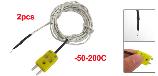 Product Name Thermocouple Probe Type K Type Material Electronic Parts, Plastic, Fabric Main Color White Temperature Range -50-200C Fork Terminal Spacing 5mm/ 0.197" Cable Length 90cm/ 35.4" Total Length 95cm/ 37.4" Weight 30g Package Content 2 Pcs x Thermocouple Probe - Reviews