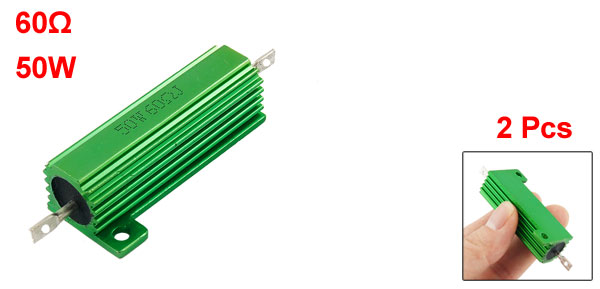 Product Name Aluminum Housed Resistor Resistance Value 60Ω Power Rating 50W Resistance Tolerance ± 5% (J) Body Size 49 x 15mm/ 1.9" x 0.59" (L*D) Mounted Hole Size 1.8mm/ 0.07", 3mm/ 0.12" Total Size 70 x 21 x 15mm/ 2.75" x 0.83" x 0.59" (L*W*T) Casing Material Aluminum Color Green Weight 48g Package Content 2 x Aluminum Housed Resistor - Reviews