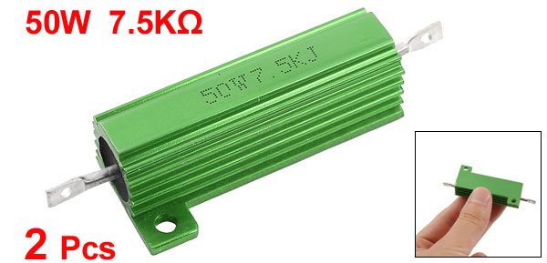 Product Name Aluminum Housed Resistor Resistance Value 7.5KΩ Power Rating 50W Resistance Tolerance ± 5% (J) Body Size 49 x 15mm / 1.9" x 0.59" (L*D) Mounted Hole Size 3mm / 0.12" Total Size 70 x 21 x 15mm / 2.75" x 0.83" x 0.59" (L*W*T) Casing Material Aluminum Color Green Weight 48g Package Content 2 x Aluminum Housed Resistor - Reviews