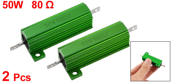 2 Pcs 50W 80 Ohm Screw Tap Mounted Green Aluminum Housed Wirewound Resistors