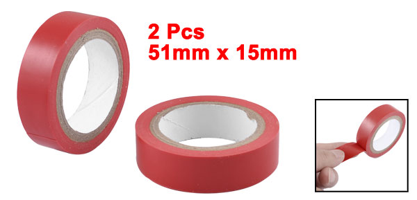2 Pcs 51mm x 15mm Red PVC Adhesived Electric Insulation Tape Roll