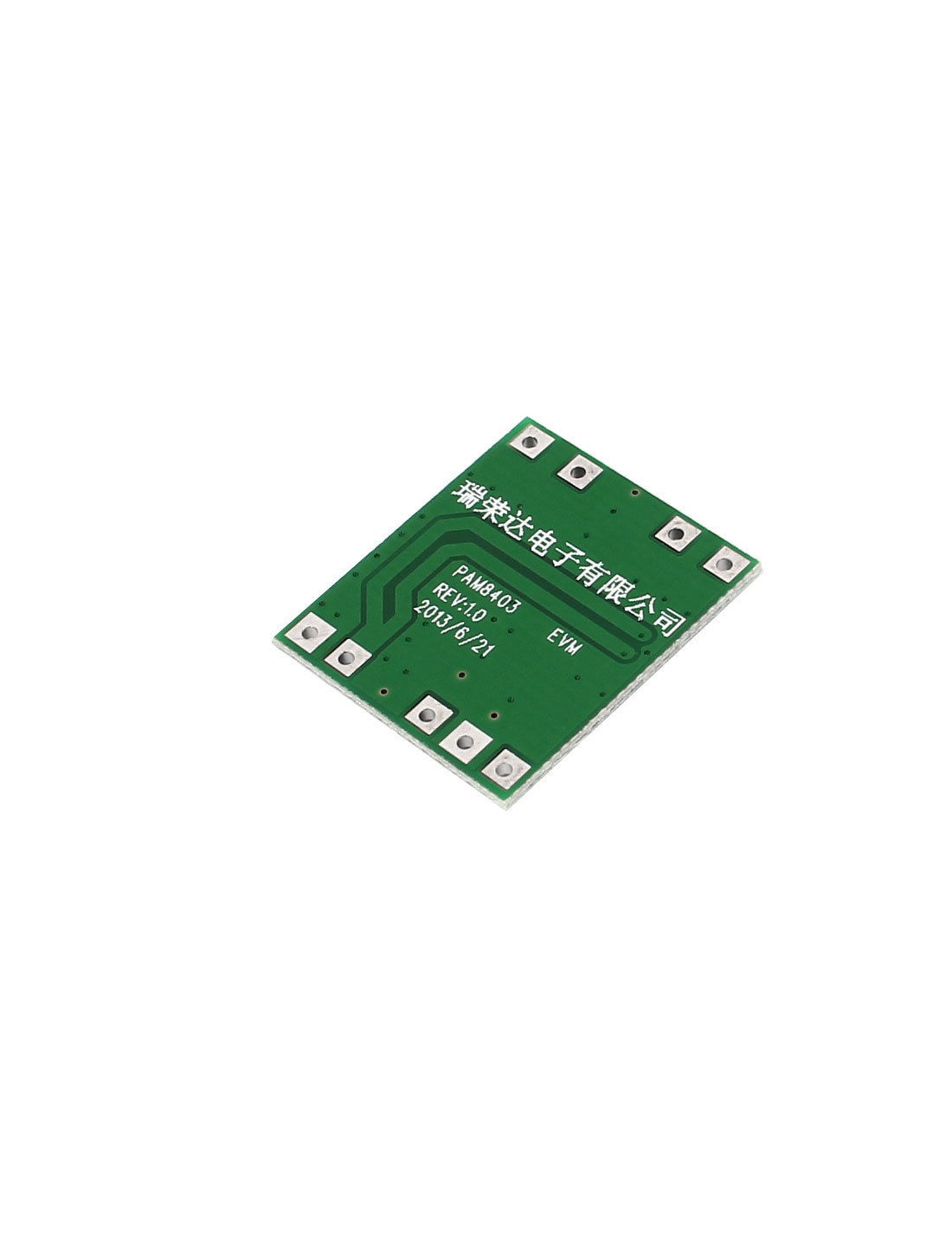 Main Color Green, Silver Tone Brand DMiotech Net Weight 4g Country of Manufacture CHINA Package Content 1 x Super Mini Digital Power Amplifiers Board Power 3W USB Power 5V Material PCB, Alluminum PCB Size 2.1 x 1.8cm/0.8" x 0.7"(L*W) IC PAM8403 - Reviews