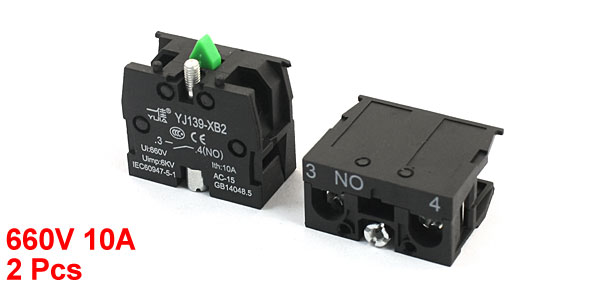 Product Name Push Button Switch Auxiliary Contact Model YJ139-XB2 Contact Type SPST(1NO) Action Type Momentary UI 660V Ith 10A Uimp 6KV Screws Terminal Quantity 2 Mounting Type Snap in Total Size(Approx) 2.9 x 2.45 x 1.5cm / 1.1" x 1" x 0.6"(L*W*T) External Material Plastic, Metal Button Color Green, Bllack Net Weigth 27g Package Content 2Pcs x Push Button Switch Auxiliary Contact - Reviews