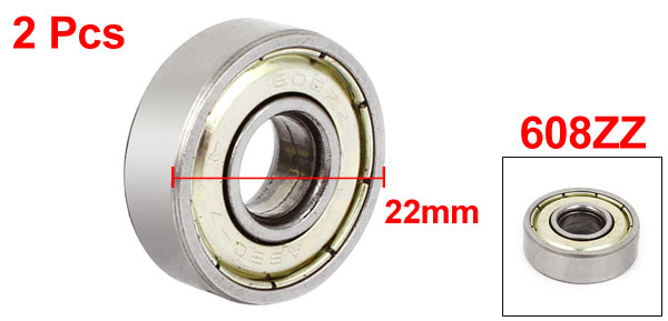 2 Pcs 608ZZ Metal Sealed Deep Groove Radial Ball Bearings 8mm x 22mm x 7mm