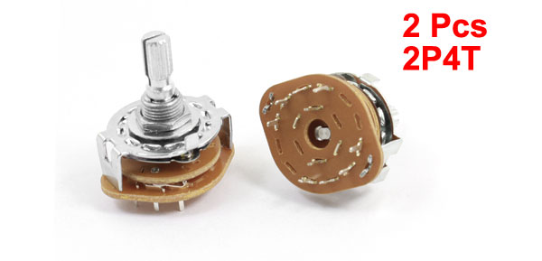 Product Name Rotary Switch Contact Type 2 Pole 4 Position(2P4T) Thread Dia 9mm / 0.35" Rotating Shaft Dia 6mm / 0.24" Shaft Length 20mm/ 0.8" Features Knurled Shaft Terminal Number 10 Pin Dimensions 24 x 38mm / 0.94" x 1.5"(Max.D*H) Material Metal, Plastic Weight 24g Package Content 2Pcs x Rotary Switch - Reviews