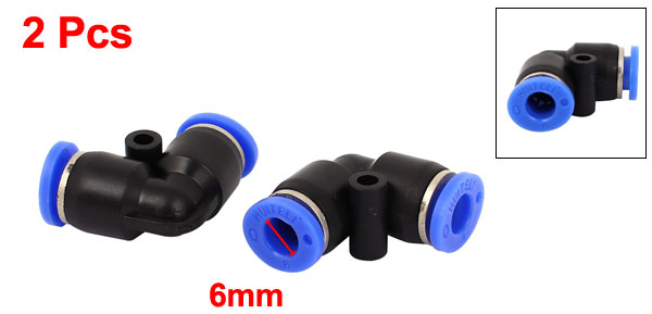 Product Name Pneumatic Quick Fittings Type 6mm to 6mm ( Right Angle) Material Plastic Dimension (Approx) 2.6 x 2.6 x 1.3cm/ 1" x 1" x 0.5" (L*W*H) Color Black, Blue Weight 10g Package Content 2 x Pneumatic Quick Fittings - Reviews