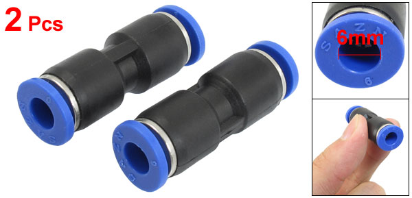 2 Pcs 6mm to 6mm One Touch Piping Joint Straight Quick Fittings