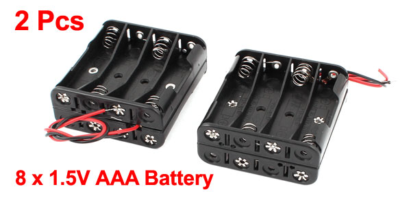 2 Pcs 6" Wire Lead Battery Clip Holder Box Case Black for 8 x 1.5V AAA Batteries