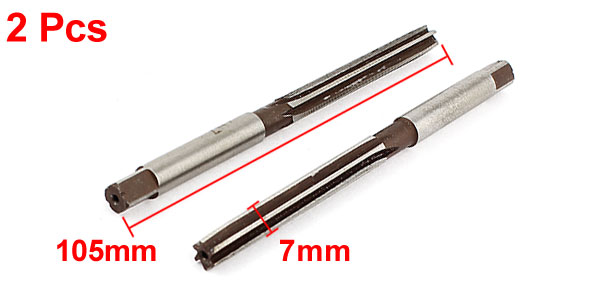 2 Pcs 7mmx7mmx55mmx105mm 6 Flutes HSS Round Shank Hand Reamer Milling Cutter
