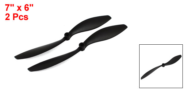 Details2 Pcs 7" Length 6" Pitch 2 Blades Plastic Props Propellers Black for RC Aircraft  Product Name RC Airplane Propeller Blade Number 2 Model EP-7060 Motor Shaft Hole Dia 3mm / 0.12" Total Length(Rotating Diameter) 178mm / 7" Pitch 152mm / 6" Max Thickness 10mm / 0.39" Material Plastic Color Black Net Weight 10g Package Content 2 x Propeller