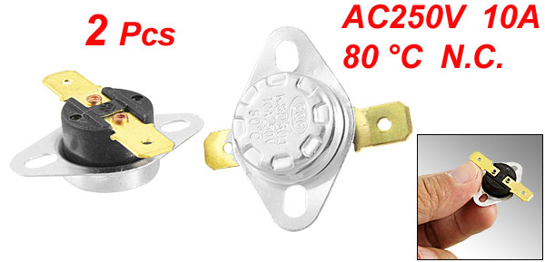 2 Pcs 80 Celsius Normal Close Temperature Control Switch Thermostat 250V 10A