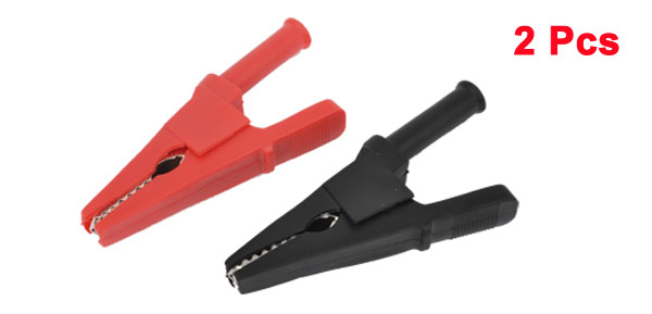 2 Pcs 83mm Long Red Black Plastic Test Lead Crocodile Clamps Alligator Clips