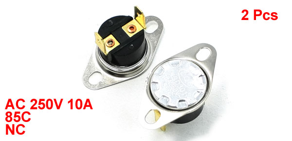 2 Pcs 85C Celsius NC. 2 Bent Foot Terminal Plastic Thermostat 10A AC 250V
