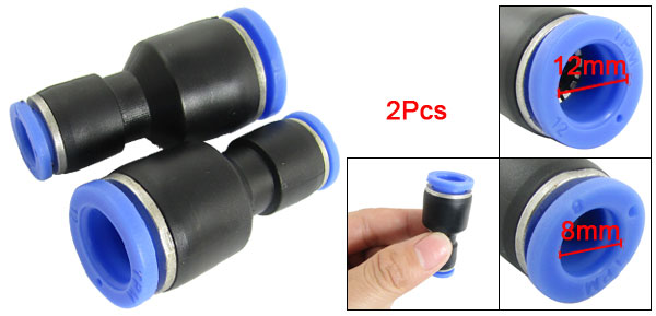 2 Pcs 8mm to 12mm One Touch Straight Quick Fittings New
